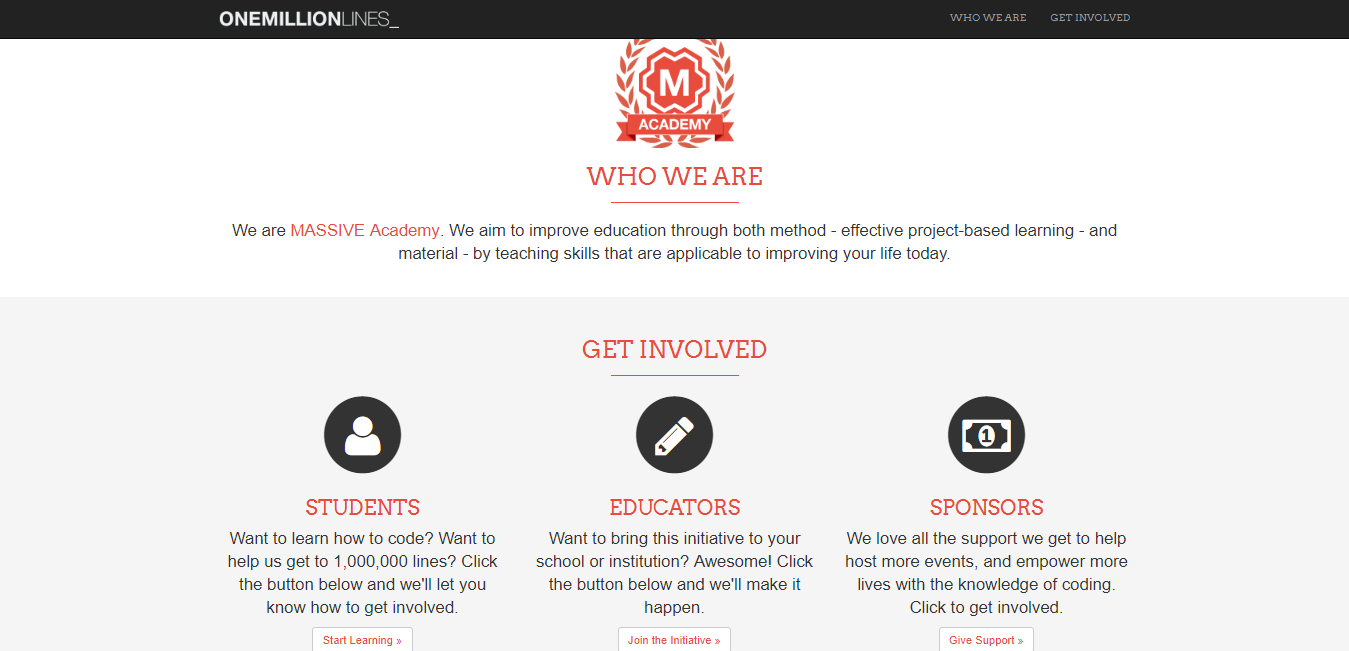 One Million Line is a MASSIVE Academy. Aim is to improve education through both method – effective project-based learning – and material – by teaching skills that are applicable to improving your life today.